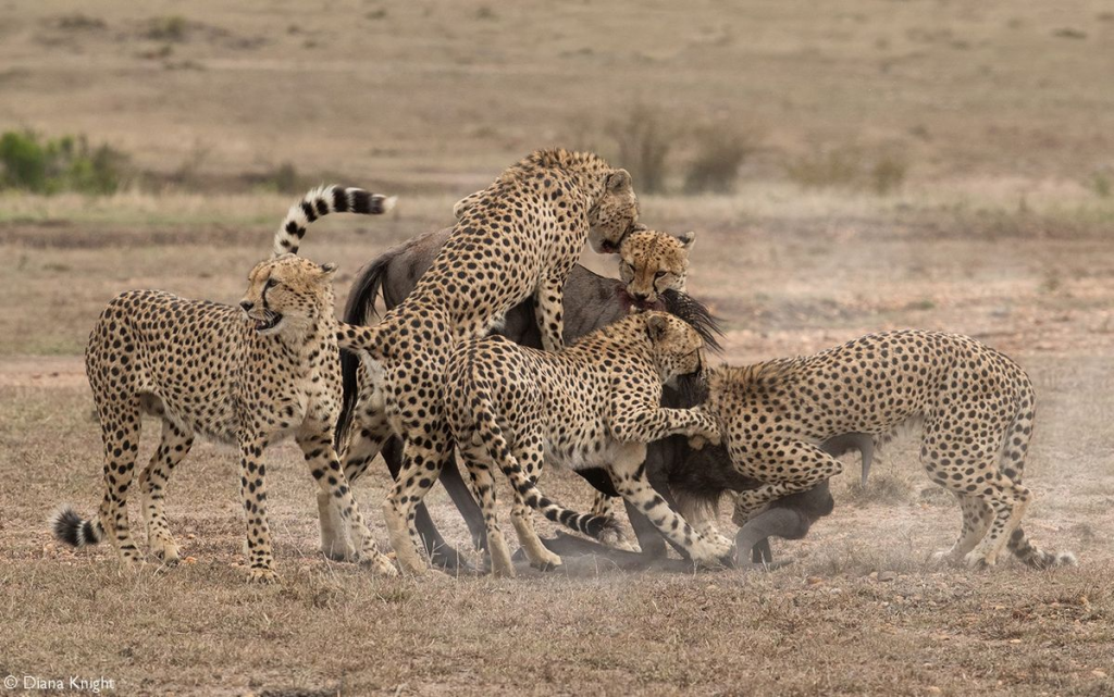 Big cats like lions, leopards, cheetahs, and hyenas follow the herds. Predation is constant and intense.