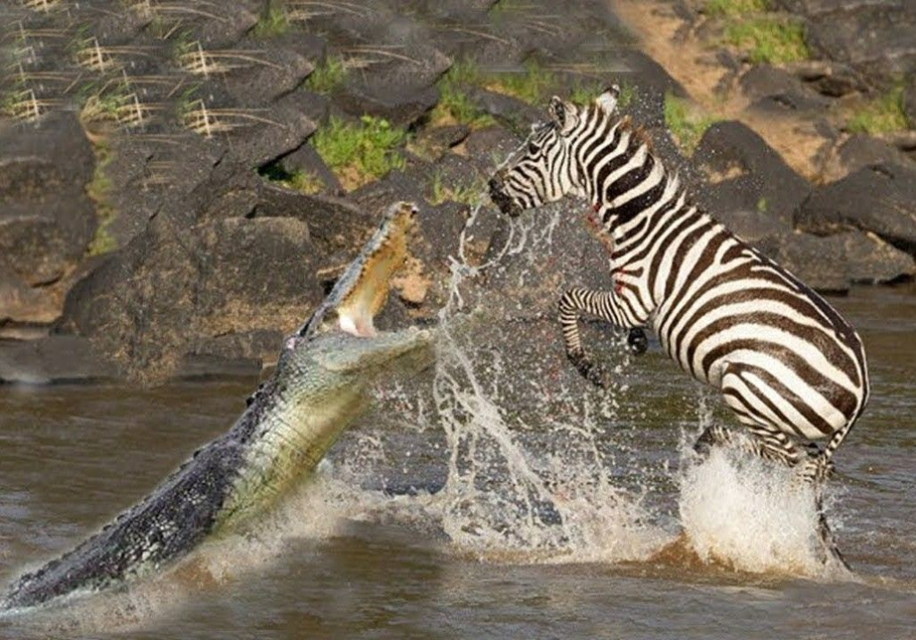 At the Mara and Grumeti Rivers, thousands of animals throw themselves into crocodile-infested waters. Many drown or are taken by predators.